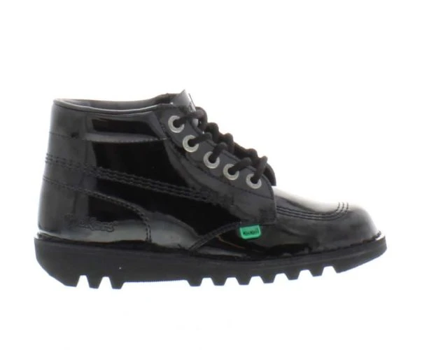 The kids Kickers Kick Hi ltr Core Classic in black patent is an ankle