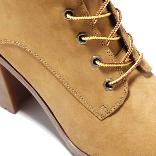has the classic Timberland look but with a block heel standing at